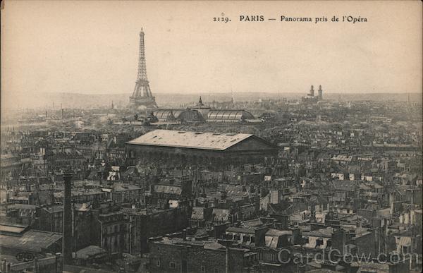 Front: 2129. PARIS Panorama pris de l'Opéra CD Back: Tous les pays étrangers n'acceptent pas la orrespondance au recto, se renseigner à la poste. a modelenu is made copper (green colone] also a portiof that of the operar.