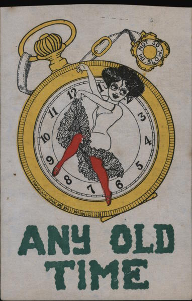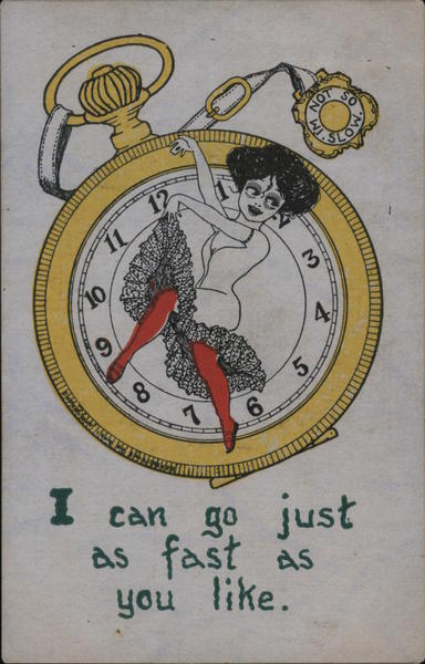 "I CAN BE WOUND UP" - Cartoon woman acting as watch hands