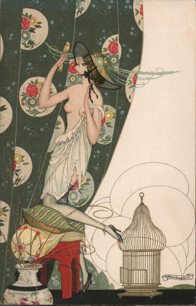 Front: 61 BRUNELLESCHI Back: əsodәр әтəрод R. & Cie IMP.-ÉDIT. 21, Rue Joubert P Р Série 31 Femme à la Perruche, par Brunelleschi 250