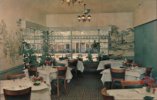 | "Right on Your Way" Phone 429-1000 Located on U.S. 341-341 & Interstate 75 Coffee Shop famous for delicious Southern food and flowers on each table. Picture showing a corner of Garden Room which overlooks pool and gardens. Same management over 20 years. |