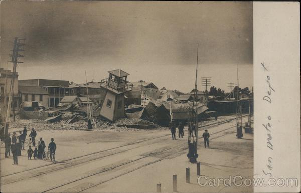 Front: San mateo Depo 71 THA f Back: The collapsed flight shed tome at the mecked the rear San Mateo Depot POST CA THE ADDRESS TO DE WRITTEN ONTS SIDE pate. 12. San Mateo San Mateo