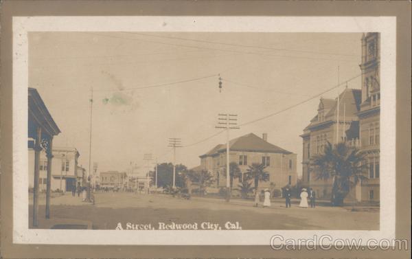 Front: TCHAR AS HOT EE A Street, Redwood City, Cal. Back: Hoyt Post Card, Redwood City, California 75 AZO♦ ΑΖΟ O HERE ΓΑΖΟ. NAME AND ADDRESS MERE 4 NO
