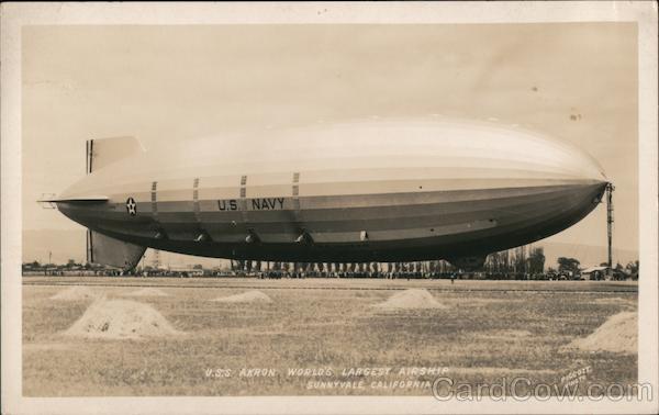 Front: U.S. NAVY U.S.S. AKRON WORLD'S LARGEST AIRSHIP SUNNYVALE, CALIFORNIA PIGGOTT Back: SANTA CLARA CO. 75 JUNE 5TH 1932