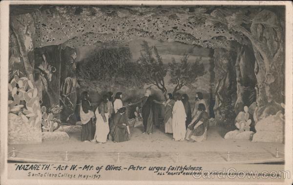 Front: "NAZARE TH."-Act IV.-Mt. of Olives.-Peter Santa Clara College May-1907. urges faithfulness. ALL RIGHTS RESERVED by FRANKISH & SMART- Phote-SAN JOSE, CAL. Back: VELOX L STAMP VELOX → > WJOX