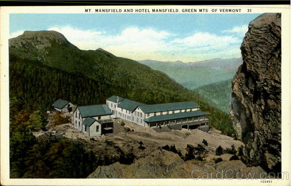 Front: MT. MANSFIELD AND HOTEL MANSFIELD, GREEN MTS. OF VERMONT 31 103951 Back: PUBLISHED BY C. W. HUGHES & CO., INC., MECHANICVILLE, N. Y. STAR QUALITY T. AMERICAN ART COLORED HERE