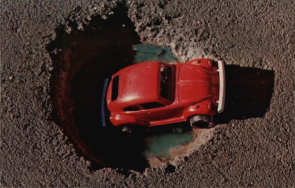 Pothole Capitol but we're not bragging. While our modern highways provide for good traveling most of the time, freezing and thawing does cause damage to pavement resulting in potholes which can be dangerous, especially for the smaller cars. |
