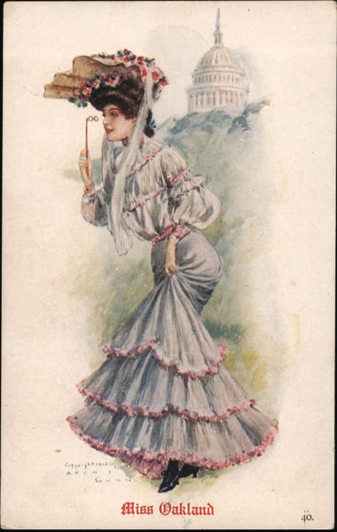 Front: OO Copyright raosto Alph Miss Oakland 40. Back: ART +CA IONAL COMA Tutto TRADE MARK POST-KARTE CARTE POSTAL