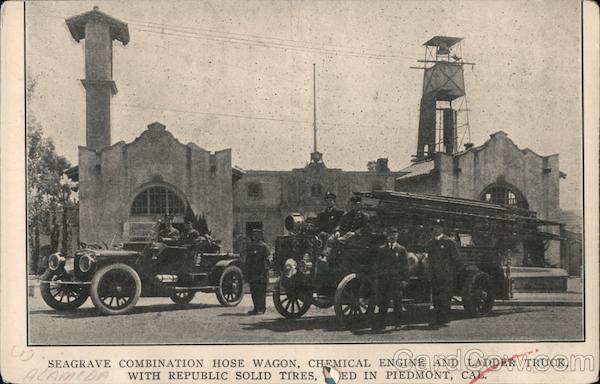 Front: SEAGRAVE COMBINATION HOSE WAGON, CHEMICAL ENGINE AND LADDER TRUCK, ALAMEDA WITH REPUBLIC SOLID TIRES, ED IN PIEDMONT, CAL. Back: 650 pasted on Photo ODOC O O OOO ON THIS SIDE. 1914 401