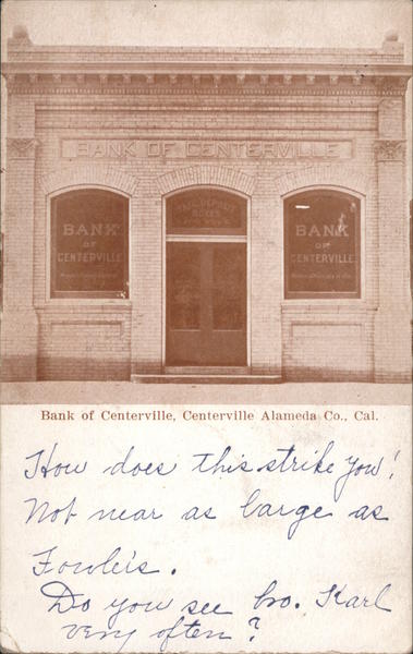 Bank of Centerville, Centerville Alameda Co., Cal.