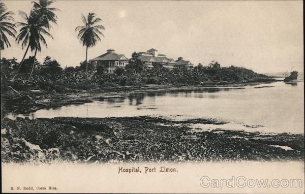 Front: Hospital, Port Limon. H. N. Rudd, Costa Rica. Back: COSTA RICA Union postale Universelle. - Union postal Universal. TARJETA POSTAL. (CARTE POSTALE.) Escribase de éste lado la Dirección y la Comunicación del otro.