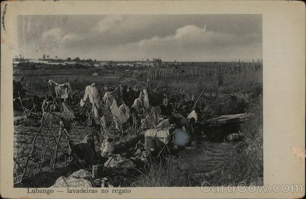 Front: Lubango lavadeiras no regato Back: Bilhete Postal ANGOLA CORRESPONDENCIA ENDERE Rem cantophile alutations Editor: Herculano de Campos Lubango 62824 arre Egypte Pars 17.7.1914