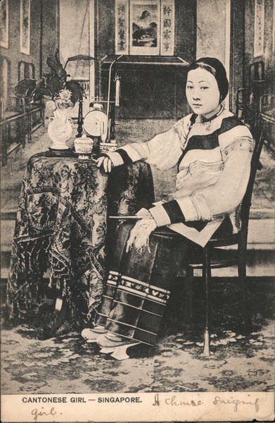Front: Achmse fnignf CANTONESE GIRL- SINGAPORE. qirl. Back: nath 12.7.13 Kuid mm. Rlwebb refarde ami apal Udfoemian Осно Health office mga fore. ignet