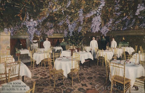 Front: TEA ROOM HOTEL JEFFERSON ST. LOUIS, U. S. A. Back: SVO HAMMON PUBLISHING OG CHICAGO TRADE NURK