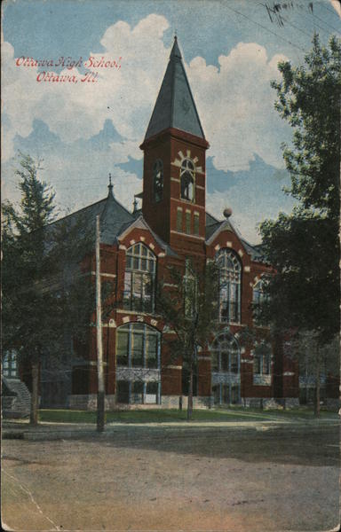 Front: Oiaava High School, Ottawa, N Back: 5- UNITED STATES OF OTTAIS 20 09 1706 FRANKLIN 1790 Man st dear Agnes postal nada will ans letter so hope you your Mis Agnes Allrich 24 48 W. Superior Chicago. inely in für