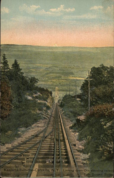 Front: Kaaterskill-in-the-Catskills, N.Y. Looking down Otis elevating railway from Summit Station Back: PUB. BY CHAS. W. HUGHES, MECHANICVILLE, N. Y. STAR QUALITY