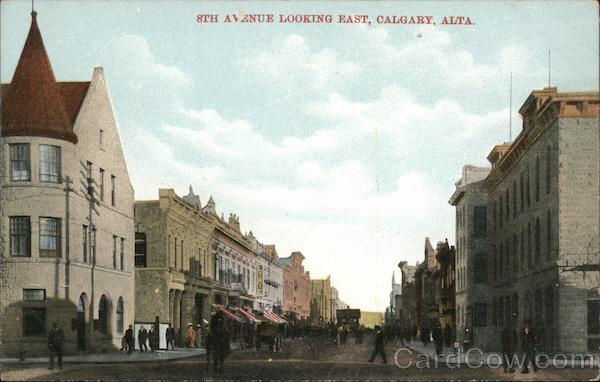 Front: 8TH AVENUE LOOKING EAST, CALGARY, ALTA. Back: SHOULD BE AFFIXED 3139 The Royal Curio and News Co., Calgary. Printed in Germany.