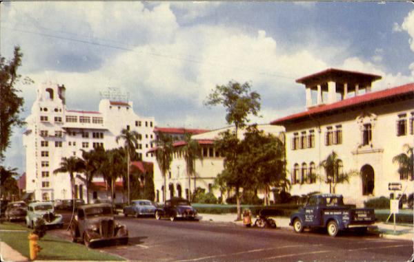 Pub. by Johnson Drug Co., Tampa, Fla. CITY HALL AND NEW FLORIDA HOTEL Lakeland, Florida P1380 "Plastichrome" by Colourpicture, Boston 15, Mass., U.S.A. L-14 Steinmetz Photo