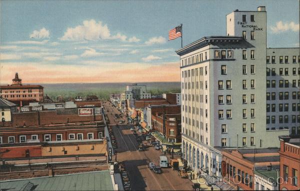 Front: FIRST NATIONAL BANK Book o ALE コ月FLL Back: DISTRIBUTED BY J. R. WILLIS, BOX 665, ALBUQUERQUE, N. M. ALBUQUERQUE, N. M. A-13–CENTRAL AVENUE LOOKING WEST, 6A-H 2781