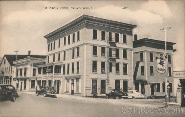 Front: ST.CROIX HOTEL, CALAIS, MAINE 6402 Mobilgas ST.CROIT НOTEL EM MOBILUE OLEW PRIVATE PARKING PREVATE PARKS GUEST Back: q 요 BOSTON, MASS. AMERICAN ART POSTCARD CO. PHOTOLUX