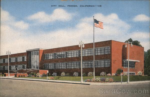 Fresno's new City Hall is typical of the modernity of the city, its office buildings, stores, hotels, theatres and schools. Fresno, the industrial center to one of the world's richest agricultural regions, is equally proud of its mile upon mile of paved, tree shaded streets lined with beautiful homes set amid green lawns, flowers and shrubs. E. C. Kropp Co. |