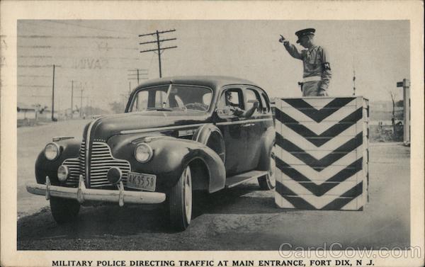 MILITARY POLICE DIRECTING TRAFFIC AT MAIN ENTRANCE, FORT DIX, N .J.
