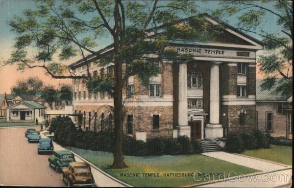 Front: NASONIC TEMPLE MASONIC TEMPLE, HATTIESBURG. MISSISSIPPI Back: PUB. BY D. E. LEVINE NEWS AGENCY, HATTIESBURG, MISS. Tow Zona 47947