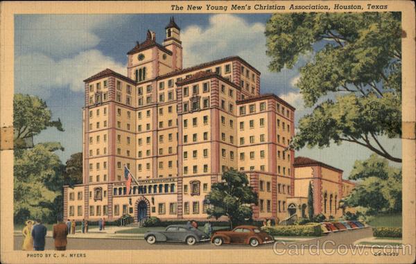 The Houston Young Men's Christian Association is ten stories high and contains 1,816,000 cubic feet of space. Its cost, including site and furnishings is in excess of $900,000. The architectural style of the building is Italian Renaissance inviting and colorful. The interior, also will be featured by extensive use of color on walls and ceilings. Curt Teich & Co., Inc. |