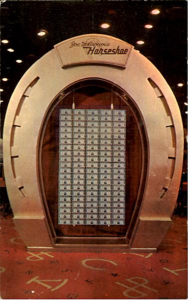 LAS VEGAS ONE MILLION DOLLARS IN ACTUAL CASH!-ONE HUNDRED $10,000 BILLS-ON DISPLAY IN GIANT HORSESHOE AT JOE W. BROWN'S HORSESHOE CLUB IN DOWNTOWN LAS VEGAS, NEVADA.