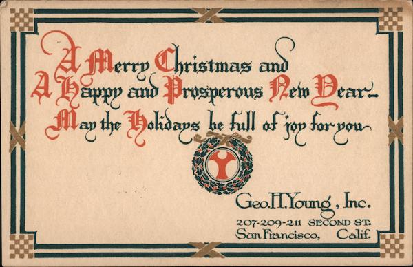s and A Merry Christma Happy and Pr Zew Dear. the Holidays be full of jop for pou siperous Ma GeolLYoung, Inc. 207-209-211 SECOND ST. San Francisco, Calif.