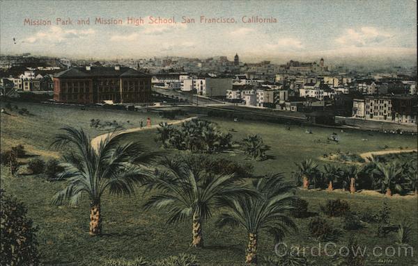 Front: Mission Park and Mission High School, San Francisco, California KL P63154 Back: 20 1c to United States Canada or Mexico 2c to all other Countries. Chas. Weidner, Postcard Publisher, San Francisco, Cal. No. 641 qoikk