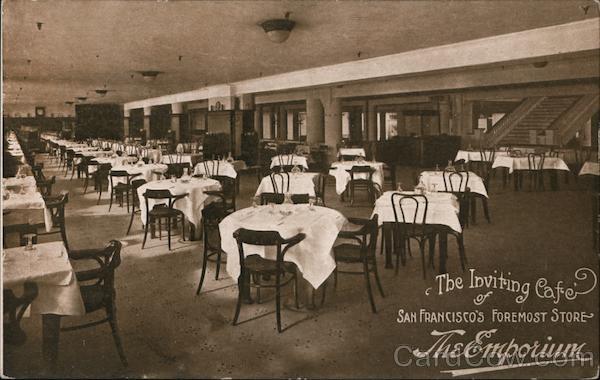 Front: The Inviting Cafe of SAN FRANCISCO'S FOREMOST STORE The Emporium Back: ०००००००००००००००००० 000 pe POSTCARD 000 United States 50 - One Cent- -Two Cents- ooo BARDELL ART PRINT S.F.
