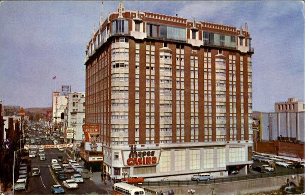 | RENO'S LARGEST HOTEL AND NEVADA'S TALLEST BUILDING, THE MAPES IS KNOWN TO MOST WORLD TRAVELLERS AND RENO VISITORS AS UNEXELLED IN COMFORT, CUISINE AND FRIENDLY SERVICE. THE SKY ROOM, ATOP THE MAPES AFTERS THE FINEST VIEW OF RENO AND THE NEIGHBORING SIERRA |