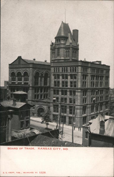 Front: 11 HIL BOARD OF TRADE, KANSAS CITY, MO. E, C. KROPP, PUBL., MILWAUKEE NO. 12 28. Back: posr Cara FOR EIGN