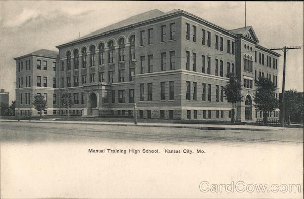 Front: FF FF 11 11 NI JE Manual Training High School. Kansas City, Mo. Back: United States, and Island Possessions, Cuba, Canada and For all other Countries two Cents, No. 715 Published by The South-West News Company, Kansas City, Mo. Leipzig-Berlin