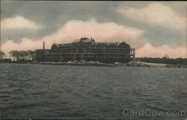 Front: MI ARMS EST GLOUCESTER MASS, FROM THE HARBOR Back: No. 697. Pub. by Boston Post-Card Co., 12 Pearl St. HAND COLORED
