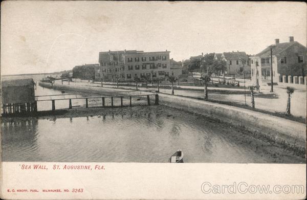 Front: uu baug hina HAT SEA WALL, ST. AUGUSTINE, FLA, 6. O. KROPP. PUBL. MILWAUKEE, NO. 3243 Back: Post Cards FOR EIGN