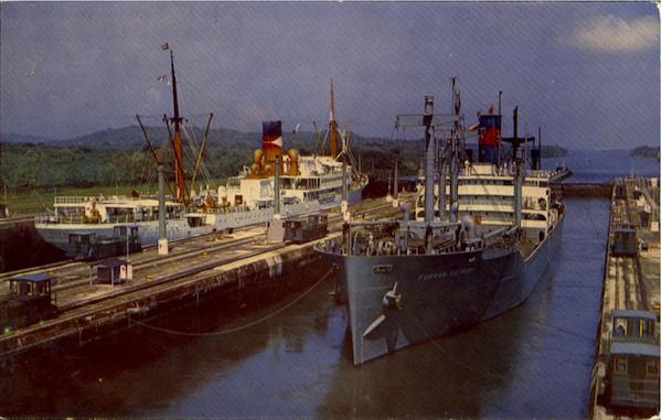 There is a steady transit of ships, coming and going through the Panama Canal.