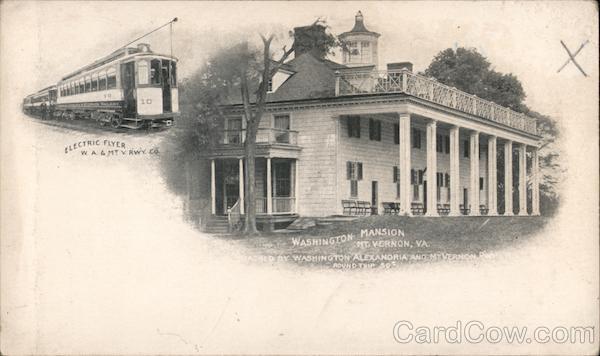Front: 10 X X***. ELECTRIC FLYER WA&MT V. RWY. CO. WASHINGTON MANSION MI VERNON, VA SCHEDE WASHINGTON ALEXANDRIA AND MOVERNON ROUND TRIPOS Back: Private Mailing and AUTHORIZED BY ACT OF CONGRESS OF MAY 19th, 1898.