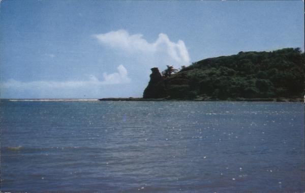 Between the villages of Inarajan and Merizo, Guam is the Bear Rock which got its name from its amazing resemblance to a bear. HATURAL Mike Raberta Ektachrome photo by Ben Cespedes BERKELEY 2, CALIF C6192 PRINTED IN U.S. A. COLOR