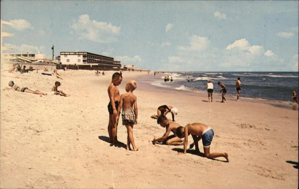 Talking things over on the beach at OCEAN CITY, MARYLAND P72330 Color photo by F. W. Brueckmann POST CARD plastichrome by COLOURPICTURE BOSTON, MASS. 02130 Tingle Printing Co., Pittsville, Md.