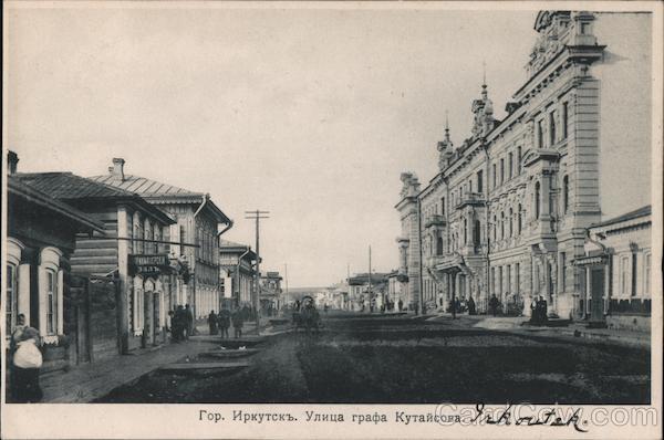 Front: PKMAXEPCEIK ЗАЛЪ. INERP Irkoutsh. Гор. Иркутскъ. Улица графа Кутайсова. Back: ОТКРЫТОЕ ПИСЬМО.— CARTE POSTALE. ВСЕМІРНый почтовый союзъ. Россия. мѣсто для корреспонденціи. Адресъ, Изд. т-ва К. П. Цѣна 5 коп. Фототипія Отто Ренари, Москва.