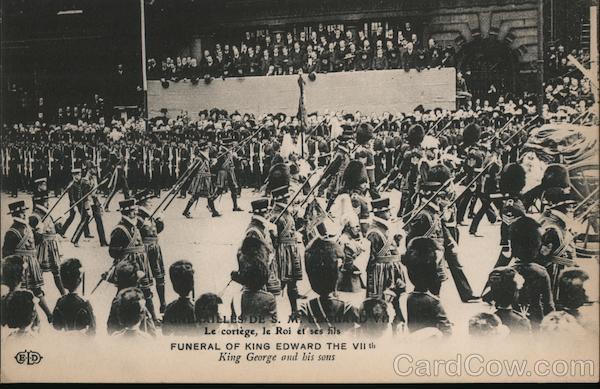 Front: FFF KAILLES DE s. Le cortège, le Roi et ses ffils LOUARDA FUNERAL OF KING EDWARD THE VII th ED King George and his sons Back: Tous les pays étrangers n'acceptent pas la correspondance au recto, se renseigner à la poste