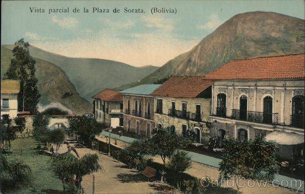 Front: Vista parcial de la Plaza de Sorata. (Bolivia) Back: González y Medina. La Paz. Oruro. Cochabamla y PotosĂ. Editores. Bolivia TARJETA POSTAL UNIVERSAL