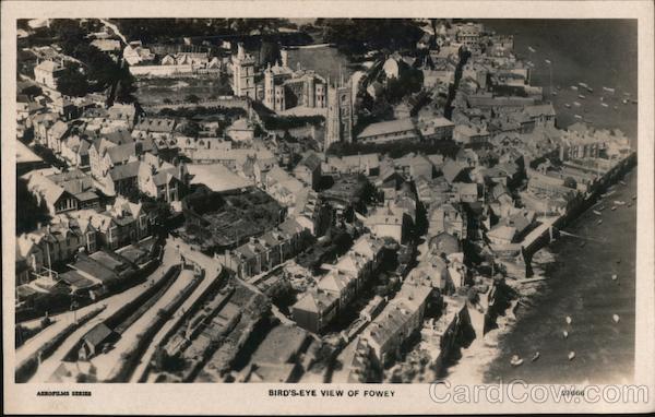 Front: AEROFILMS SERIES BIRD'S-EYE VIEW OF FOWEY 21666 Back: Copyright Air View by Aerofilms Ltd., Helicon, N.W.9. Real Photographic Enlargements can be obtained. JEROFUMS