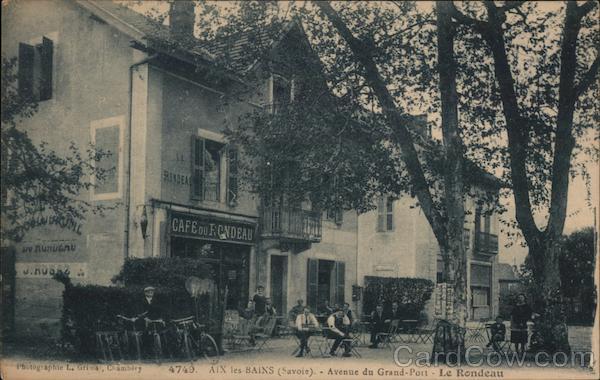 Front: ROMDEA CAFE DU RCNDEAU UME 4749. AIX les-BAINS (Savoie). Avenue du Grand-Poit Le Rondeau Photographie L, Grimal, Chambéry 347 惠 Back: CARTI POSTALE