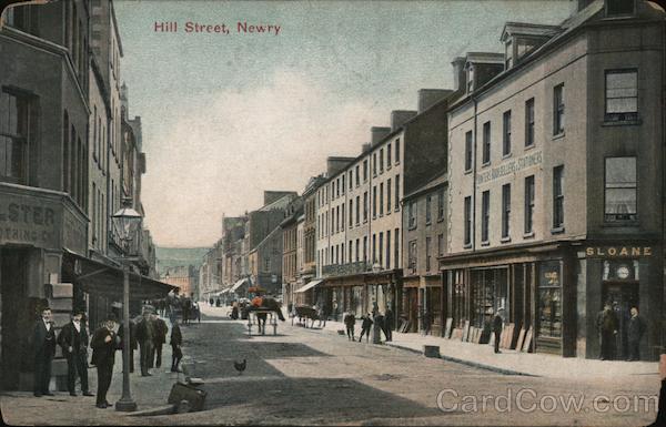 Front: Hill Street, Newry PINTES BRNSLES STATOMERS STER EHING CO SLOANE SLOAD Back: 30 Valentine's Series Write here for Inland Postage only.