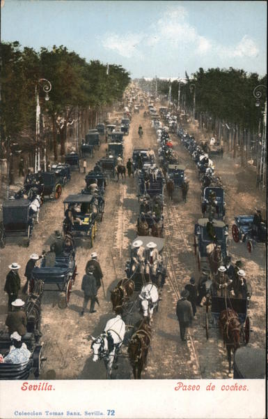 Front: Sevilla. Paseo de coches. Coleccion Tomas Sanz. Sevilla. 72 Back: UNIÓN UNIVERSAL DE CORREOS ESPAÑA En este lado se escribe solamente la dirección. Purger & Co., München. Photochromiekarte. 2697