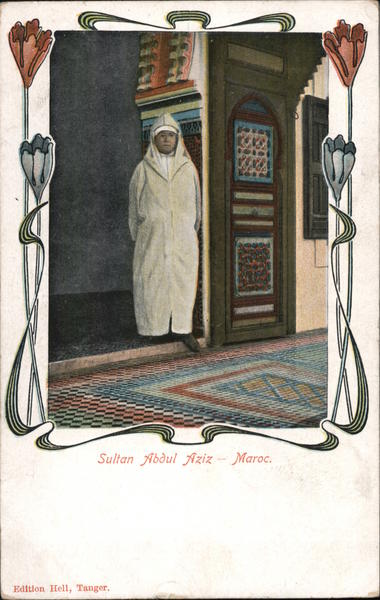 Front: Sultan Abdul Aziz – Maroc. Edition Hell, Tanger. Back: CARTE POSTALE. UNION POSTALE UNIVERSELLE.