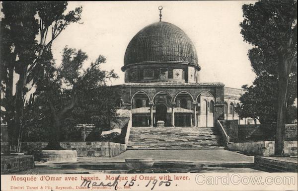 Front: Mosquée d'Omar avec bassin. Mosque of Omar with laver. Dimitri Tarazi & File, Beyrouth, Da (5. 1905. Dimitri Tarazi & Fils, Beyrouth, Damas, Jerusalem. No. 880. Back: Turquie. Union Postale Universelle. Carte postale.