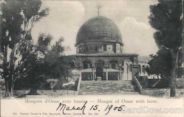 Mosquée d'Omar avec bassin Mosque of Omar with laver. Makch 15.1905. 282. Dimitri Tarazi & Fils, Beyrouth, Damas, Jerusalem. No. 344.